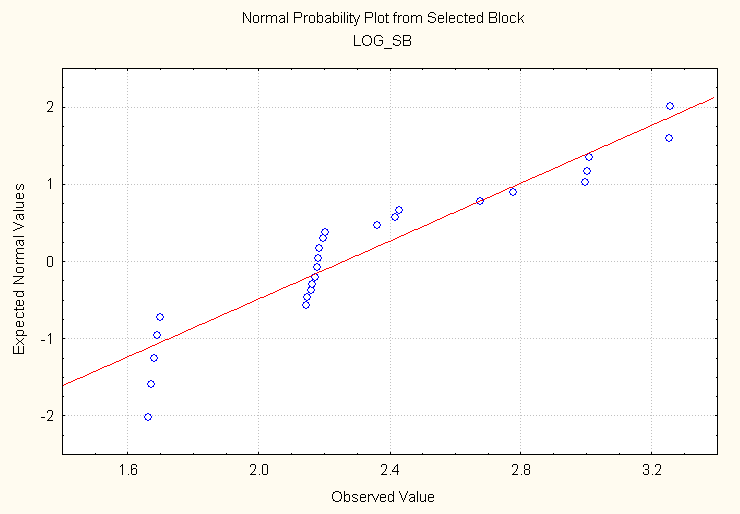 is a normal probability plot for Spiegelman et al.'s 30 bullets. Since log(Sb)
