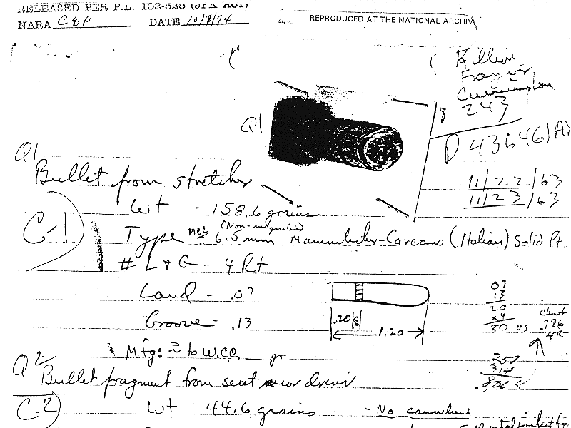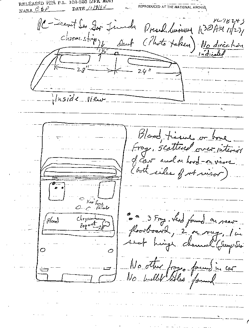 FBI worksheet from examination of limousine on 11/23/63 at 1 AM.